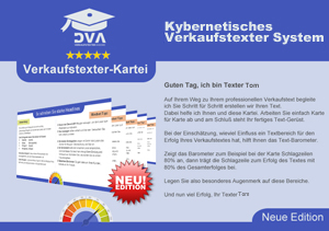 Das Kybernetische-Verkaufstexter-System ist ab sofort Ihr treuer Begleiter in allen Lebenslagen, in denen Sie umsatzstarke Verkaufstexte benötigen.